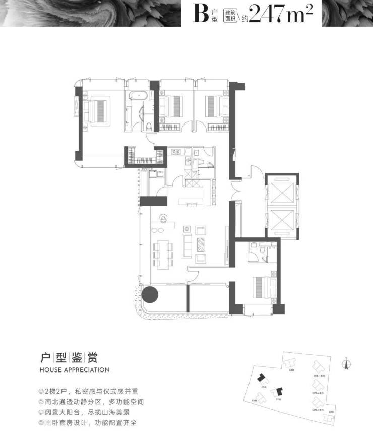 前方基本没有遮挡,噪音也是三个户型里最小的,适合对景观有要求,能接受部分噪音的客群。