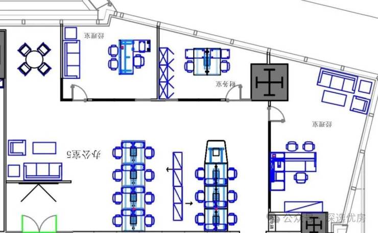 🔹单位格局:4+1 【4个经理室、20-24人工位 】