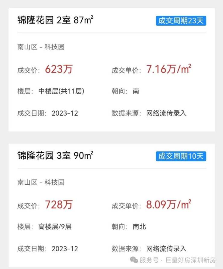一路之隔的锦隆花园,绿色外墙,该小区为楼龄20年的老小区,挂牌房源很少。链家官网显示,目前仅有3套在售,二手房参考价为76000元/平,近3个月成交单价在7.2-8.1万/平之间。