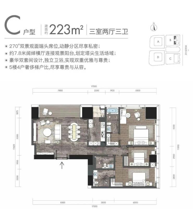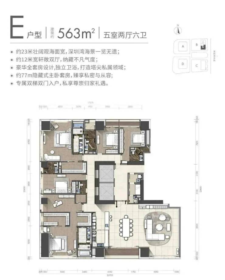 深圳湾沿岸三座标志性高楼巍然屹立,分别是春笋大厦(390米)、莱佛士酒店(350米)以及本项目(305米),彰显了其作为城市地标的独特价值。此外,本项目坐落于深圳湾一线滨海区域,享有无可比拟的居住优势,在整个深圳湾片区内堪称独一无二的理想居所。