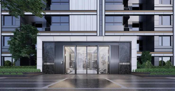 楼盘外立面:建筑外立面,实现千年古韵与现代立面美学结合,材质采用了世界塔尖奢宅标配的铝板和钻感玻璃,珍珠蓝搭配局部驼色点缀。