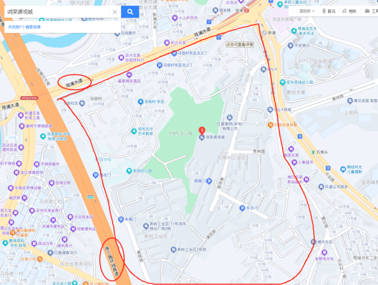 鸿荣源·观城未来平方云山府项目位于龙华观湖街道观澜中心板块,梅观高速与观澜大道交界处东南侧,距离4号线观澜站步行约500米。