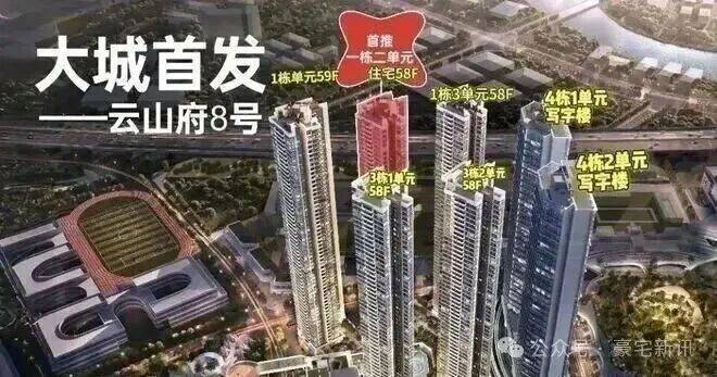 鸿荣源·观城未来平方云山府占地约2.7万㎡,总建面约37.4万㎡,计容积率建面约27.5万㎡,容积率9.23,包含约15.6万㎡住宅、约6.3万㎡办公、约7420㎡商业、约2.3万㎡配套。
