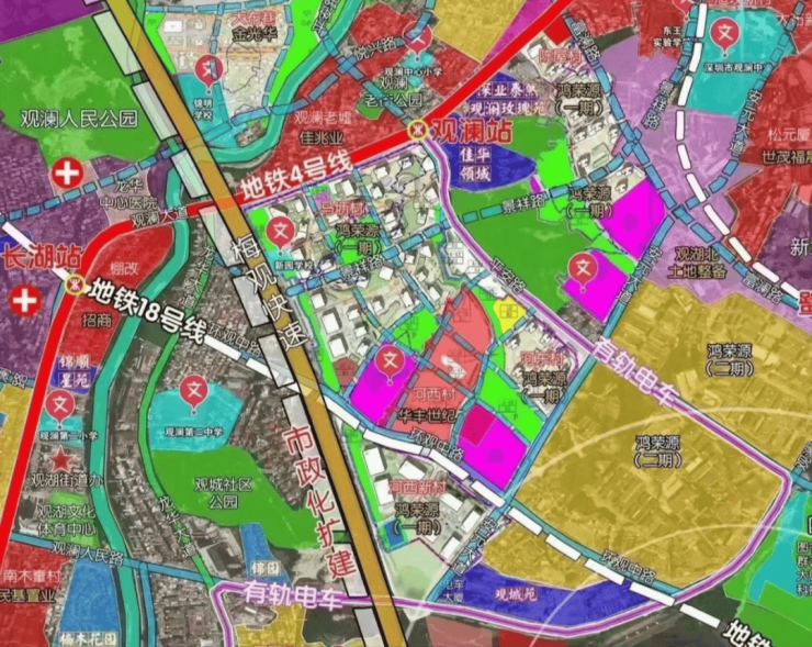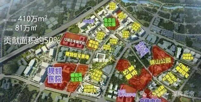 观城和鸿荣源以往甚至全深圳以往的大型旧改比较大的区别是,项目规划建设5大公园融入社区,改变了过去旧改项目都是超高容积率的惯例(楼盘高容积率,但片区不算是),并且规划了高速公路(梅观高速)直接连通项目车库,这是极具创新的实践。