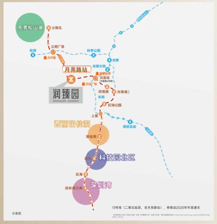 直线距离约600m尽达地铁13号线月亮路站(建设中),未来有望9站直达南山后海片区,实现家与公司的快速连接,更好平衡工作和生活。