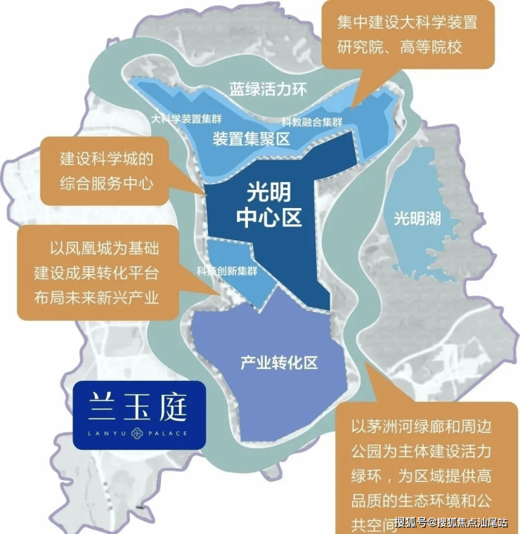 光明科学城占据广深港科技创新走廊重要节点,将建设成世界一流科学城和深圳北部中心,定位为大湾区综合性国家科学中心先行启动区,打造“中国新硅谷”。项目傲踞光明科学城南部,未来一片光明。