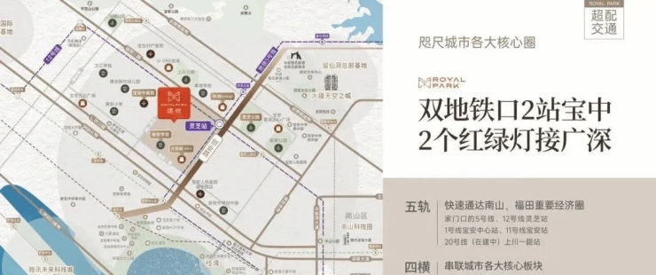 ✨• 双轴交汇:深圳一路向西发展新主轴,与前海中心滨海主轴——湾区商务大道交汇,成就城市黄金双轴交汇点;• 黄金交汇点:珺悦ROYAL PARK,傲踞黄金双轴交汇点,汇聚商务、商业、科技、生活、休憩、交通等多元发展要素,坐享城市发展利好。