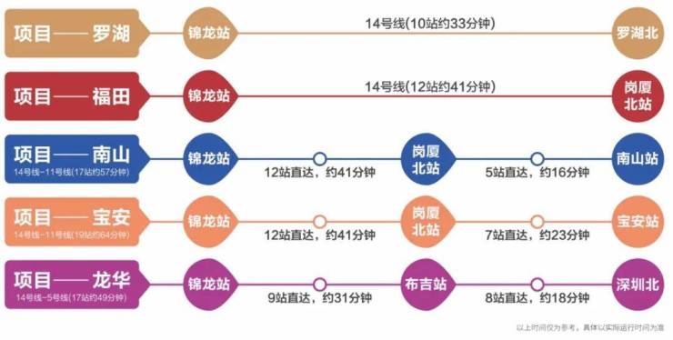 多轨交汇,12站快线抵福田:紧邻14号快线坪山门户站——锦龙站,步行距离约692米,快速通达城市各区。