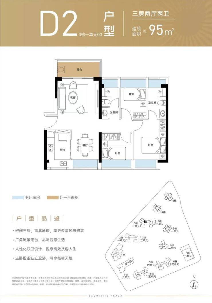 94㎡ 三房两厅二卫 总价280-310万