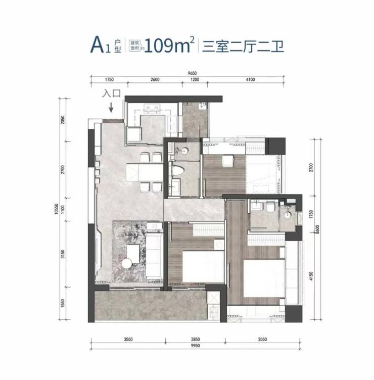 A户型 建筑面积约109-111㎡ 3房2厅2卫