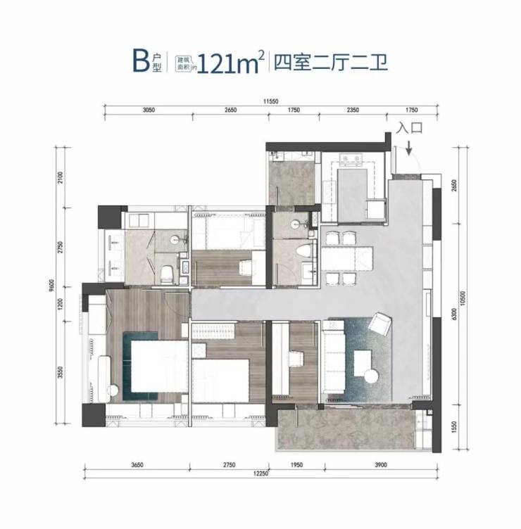 B户型 建筑面积约121㎡/121㎡ 4房2厅2卫