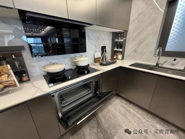 橱柜内藏了不少设备,基本上都是集成联动和智能的,如方太烟灶联动、蒸烤一体机、净洗集成系统等等。功能贼多就不展开了,大家可以直接到现场把玩。