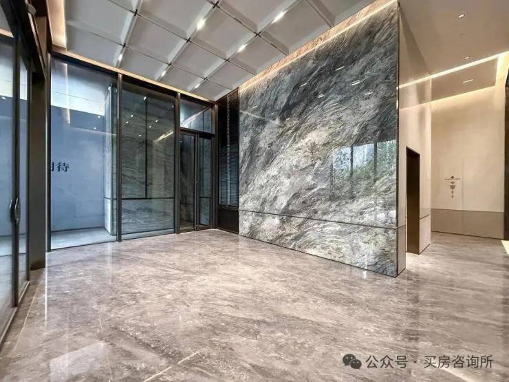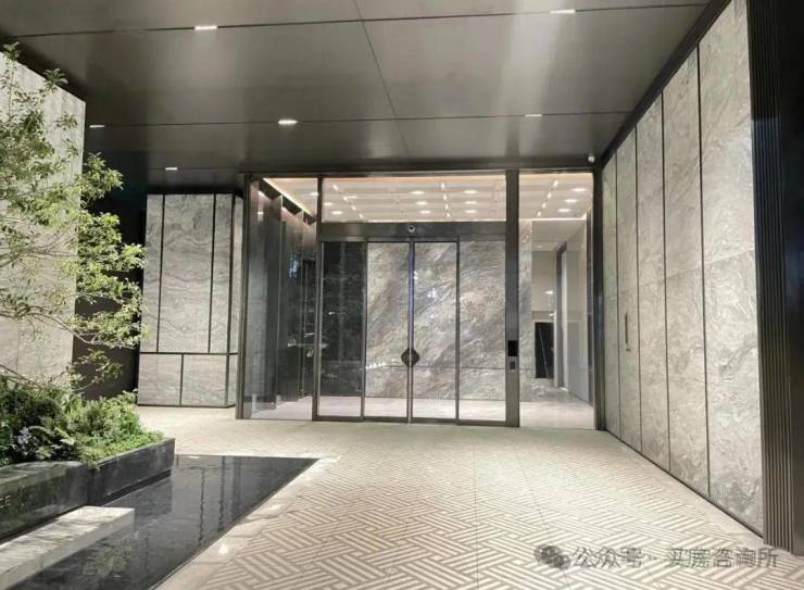 公区方面,大堂和电梯间采用了大量石材和现代审美融合设计,所有的标识文字都采用了立体金属材质,看得出来是花了心思去造的。