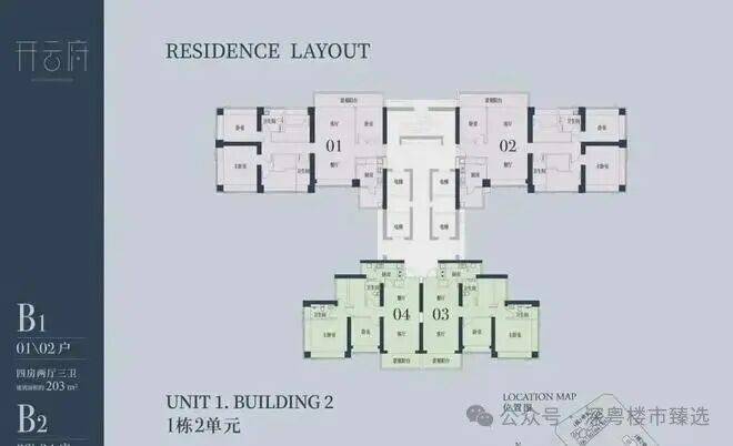 1栋二单元B1户型:面积约为203㎡;