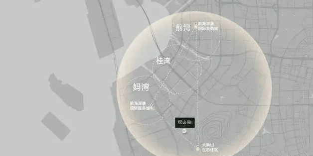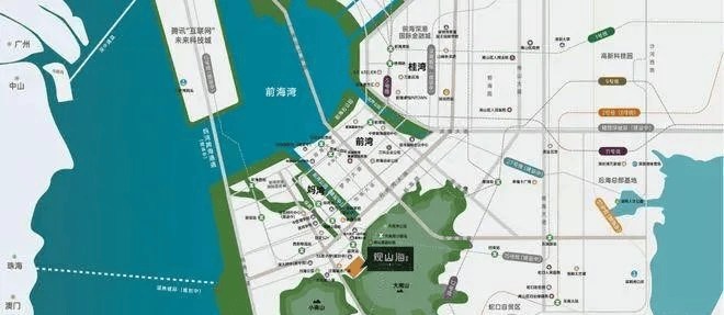 观山海家园在5号线荔湾站周边,位于深圳市南山区沿山路荔山东北侧,项目在前海合作区内,享受前海政策规划利好,毗邻大南山,靠近妈湾片区,观山海家园位于前海片区“三湾两城一山”中的大南山生态住区,与桂湾国际金融城和妈湾前海深港国际服务城两大前海核心区引擎,形成前海黄金三角