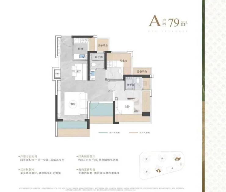 2、户型得房率高。中建鹏宸云筑是房建新规下的第一批报建,还是有一定优势的。而且户型格局设计比较合理,户户朝南的设计也很科学人性化!