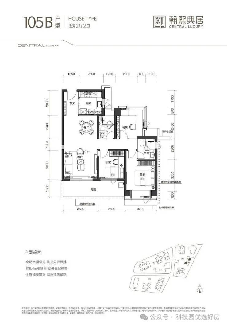 ②105平三房两厅两卫B户型:约915-1088万,8.6-10.1万/㎡