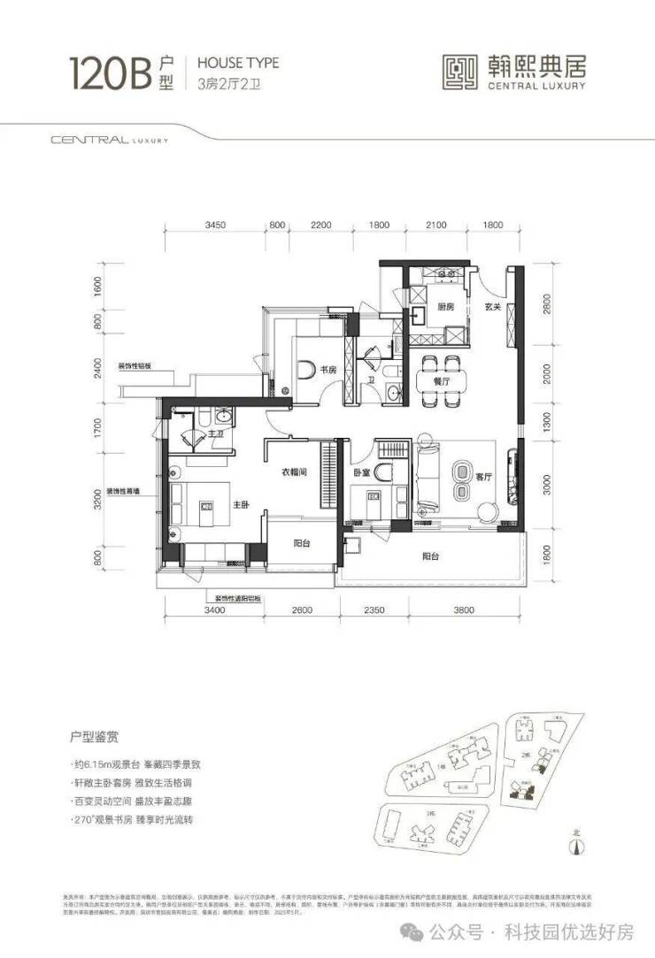 ③120平四房两厅两卫B户型:约1164-1291万,9.1-10.8万/㎡
