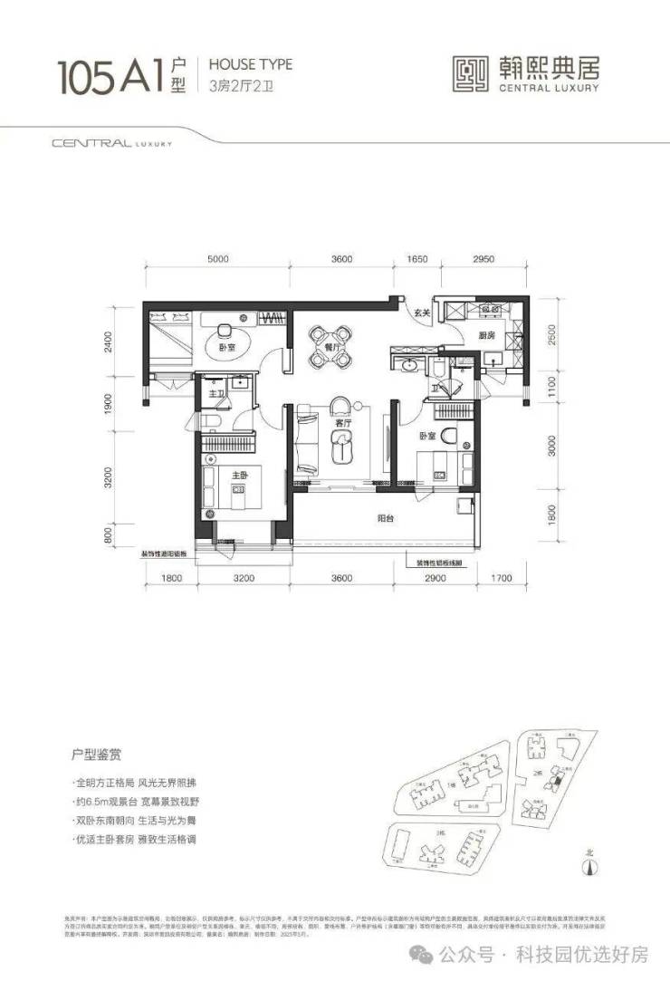 ①105平三房两厅两卫A户型:约1037-1127万,9.7-10.5万/㎡