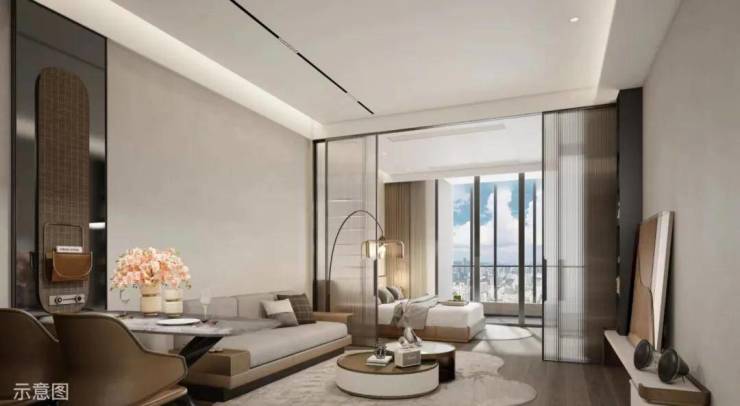 前海时代国际公寓融合国际美学和现代艺术设计,打造了户型为约55-125㎡的1-3房臻品美寓,层高3.6米,大开间格局,悦景阳台,尺度舒适。