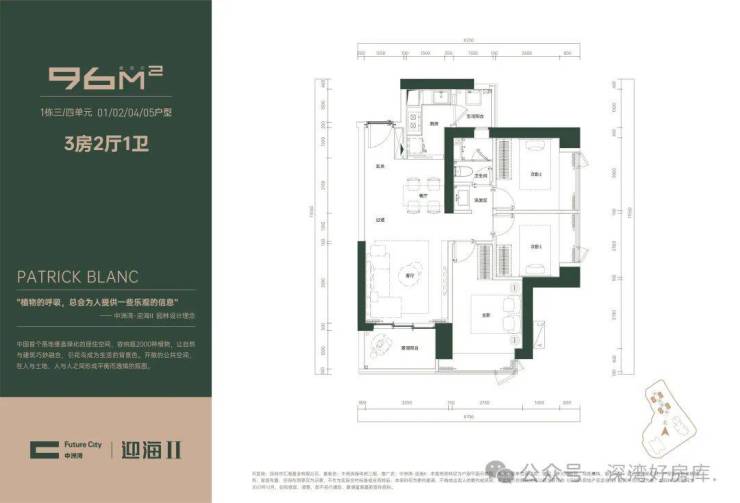 96-109㎡3房主力户型、125㎡4房臻藏户型,4梯6户舒适梯户比,3.15米阔绰层高,约7600㎡空中花园、顶奢酒店式入户大堂,公园环抱的潮流商业艺术街区、一场融合科技、自然、雅奢的“水之旅程”园林及深圳湾稀缺红树林海景等多维立体视野。