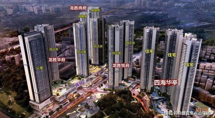 四海华亭,项目前身为“龙胜旧村城市更新单元”,共分5个地块建设,分别是龙胜华府,龙胜尚府,龙胜悦府,龙胜云坊,四海华亭,另外配建1所9年制学校,如今的龙华中学弘毅校区(龙胜学校),项目总占地面积约5.45万㎡,总建筑面积约56万㎡。