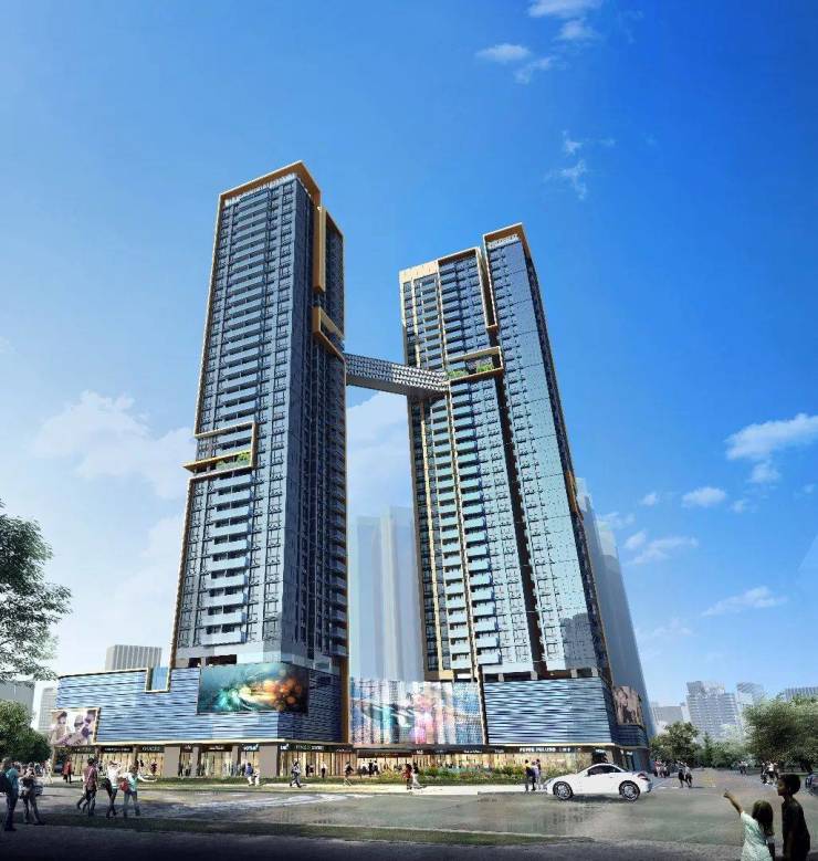 作为宝中区域豪宅典范代表,项目以国际化现代简约立面,打造独特尊贵形象,同步通过空中廊桥打造的空中云厅连接互动,使得建筑相映成辉,为业主提供无障碍观景平台。