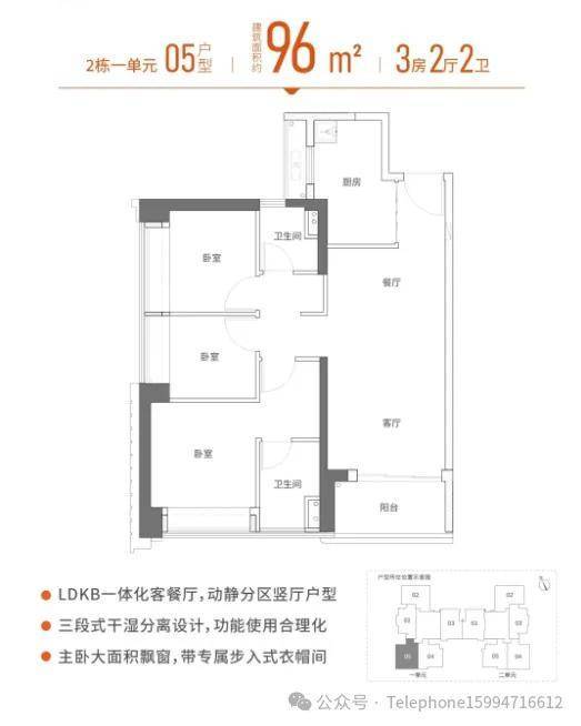 96/99㎡三房两卫:三开朝南-视野好景观佳