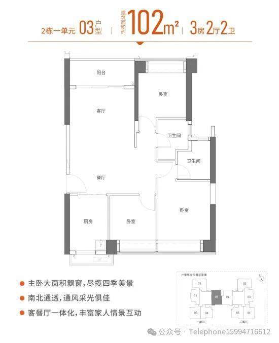 102㎡三房两卫:南北通透-稀缺通风开阔