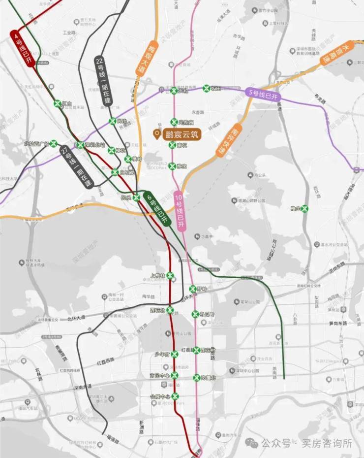 这几个图展示的很清楚,地铁10号线南坑站离项目只有小几百米,四五个站就到福田中心区,地铁十几分钟的功夫,且这条线比4号线还是友好一些,不会那么挤。