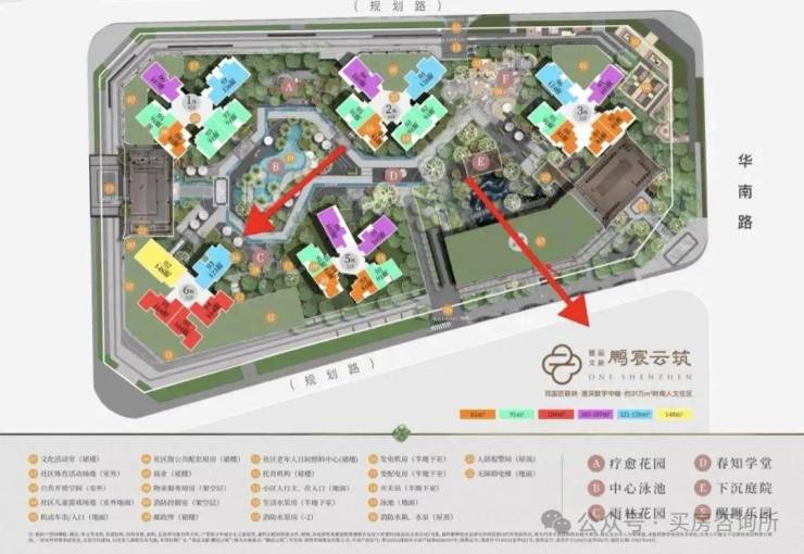 项目建面约31万方深圳城央美好生活领地,无公租房、无保障房、无人才房。采用围合式布局,以岭南建筑美学理念,打造岭南东方诗意园林。项目分32层高的2梯5户以及2梯6户,47层高是3梯6户,共10栋高层住宅组成2100户