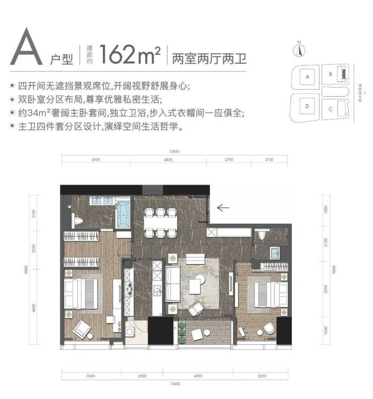 160㎡2房售罄,223㎡3房,343㎡4+1房,580㎡5房6卫