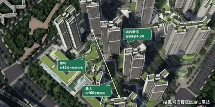 【奢阔楼间宽距】近160米超宽楼间距,最大化楼间距保证了视野的开阔度和充分的通风采光,高私密性,高舒适性。