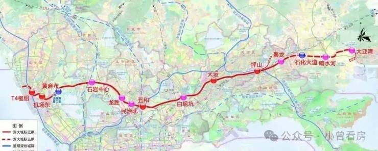 全线设地下站11座,分别为T4枢纽、机场东、黄麻布、石岩中心、龙胜、民治北、五和、白坭坑、大运、坪山、聚龙,预计 2026 年建成后,坪山至深圳机场最快仅需 40 分钟