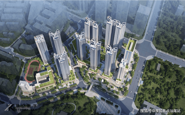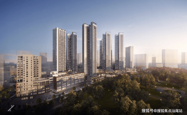 住宅建面约12.4万㎡,商业约1.34万㎡,商务公寓约1.01万㎡,商务办公约2.25万㎡,幼儿园学校约2900㎡,规划由5栋31-48层高的住宅楼+1栋29层高公寓楼+1栋21层高的办公楼+1栋3层高的幼儿园教学楼组成。