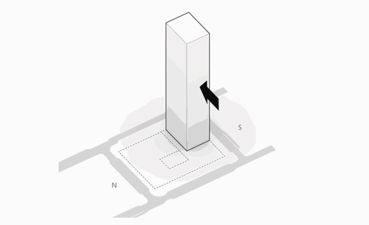 企业总部往往需要强烈的纪念性,体现百年基业的雄心。整个建筑的外立面由四种不同尺寸的网格窗构成,塔楼形体方正简洁,但富于变化的网格窗则给整个建筑带来了意想不到的自然肌理。