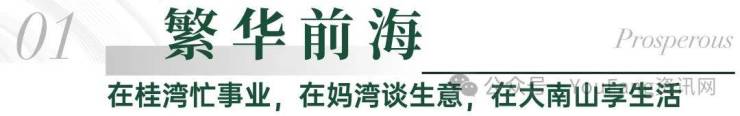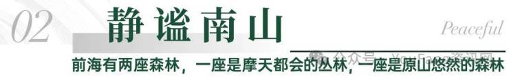 🔘大南山生态住区项目所在前海合作区大、小南山片区西组团规划定位重点安排教育、配套、体育等公共服务设施和生活服务设施(数据来源:《中国(广东)自由贸易试验区深圳前海蛇口片区及大小南山周边地区综合规划》与【桂湾】国际金融城和【妈湾】深港国际服务城两大前海核心区引擎形成前海黄金三角,工作、生意生活尽在掌握🏆山海通廊:约650米两个红绿灯,咫尺2.9k㎡妈湾理想城市约 53.8 公顷绿地公共空间,营造全域公园城市,宜业宜居的绿色人文之城(数据来源:百度房产深圳站)