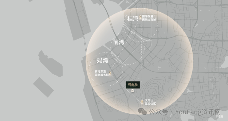 🏆前海”黄金三角“——三湾两城一山三湾:桂湾、前湾、妈湾两城:深港桂湾金融城+妈湾服务城一山:大南山生态居住区