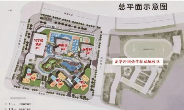 龙华外国语学校福城校区(在建中),龙华区属首个外国语教育集团,本部校区2020年第一批中考总均分、400分以上比例均位居龙华第一;