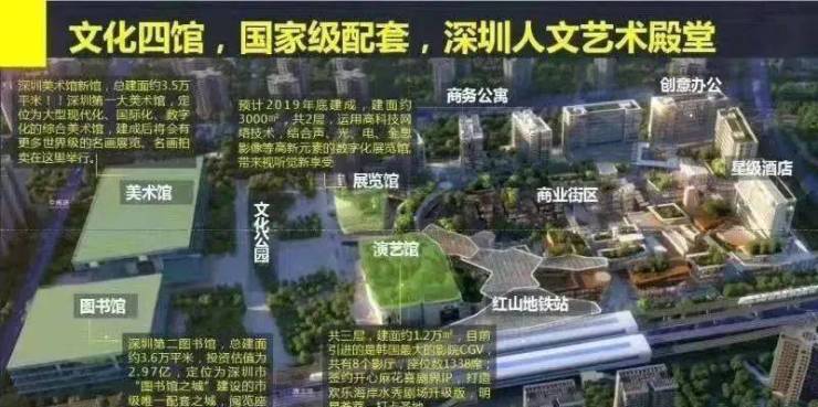 文娱配套:周边配套有龙华四馆(深圳美术馆(新馆)、深圳第二图书馆、深圳展览馆、深圳演艺馆)、开心麻花红山剧场等。