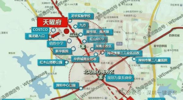 天曜府所在片区为龙华红山片区,该片区是目前龙华区居住氛围较为浓厚的片区,整体面貌较新,配套资源较为丰富,生活配套成熟,汇集了地铁、商业、学校等配套,居住体验较好。