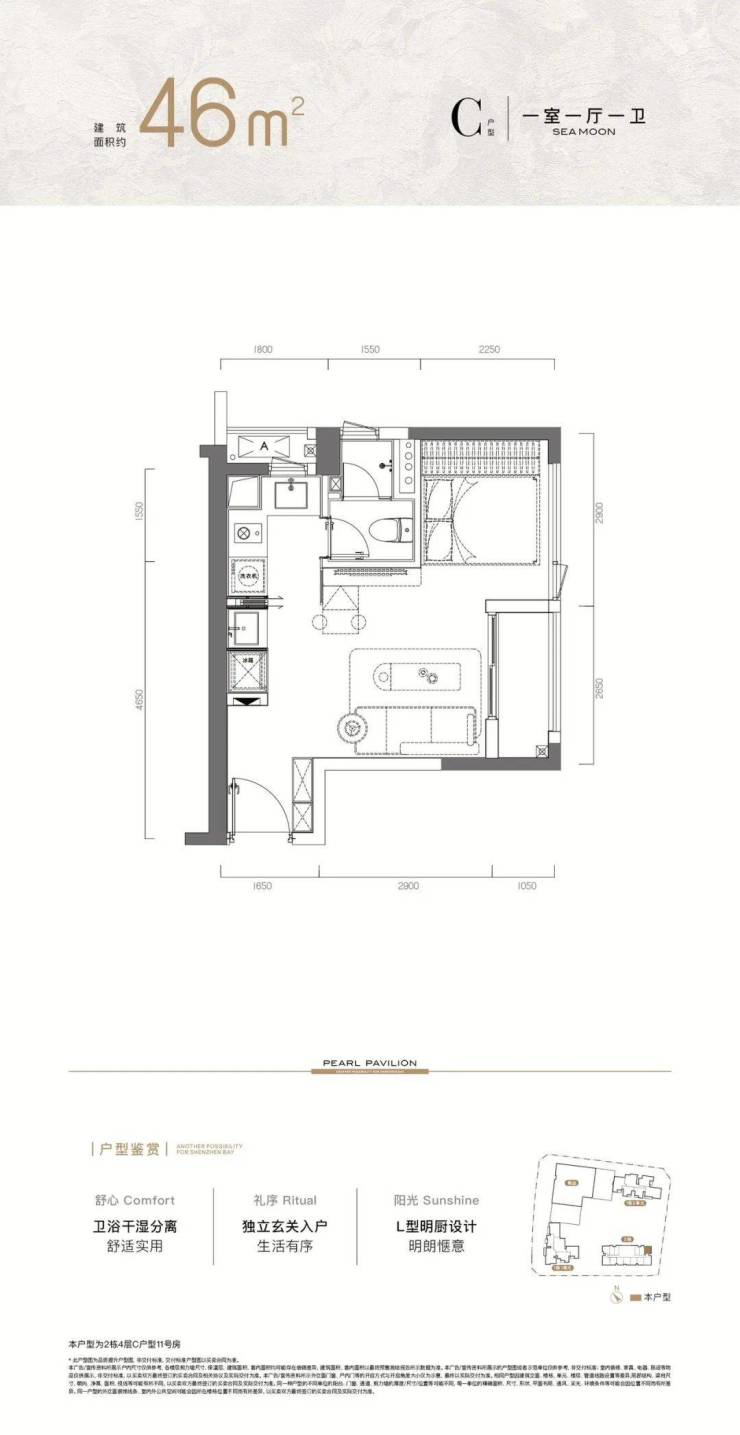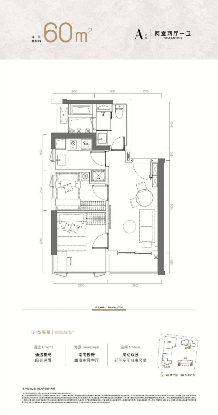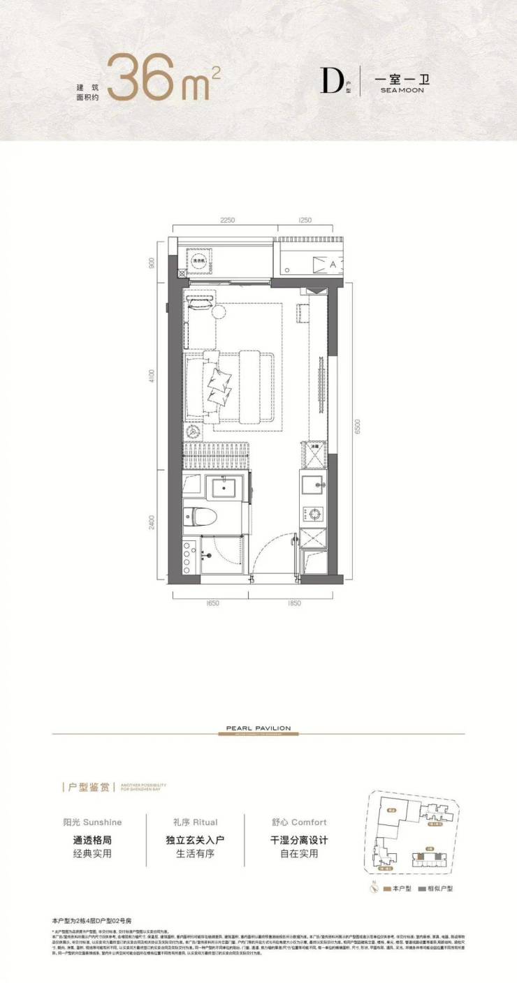 - 公寓:36 - 60㎡共390套,精致小户型,低总价轻松入手。其中36㎡折后215万起,开启您在蛇口的美好生活篇章。