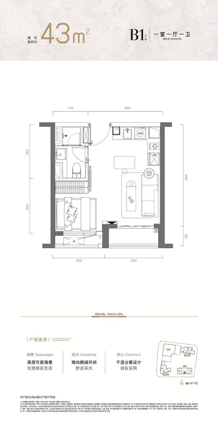 43-44㎡ | 南向瞰海一房一厅 | 落地窗