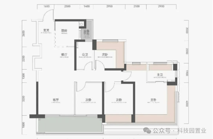 建面约114㎡ 4房2厅2卫 2-30层
