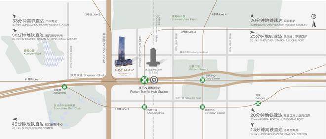 地铁出口:2/3/11号线【福田站】无缝连接