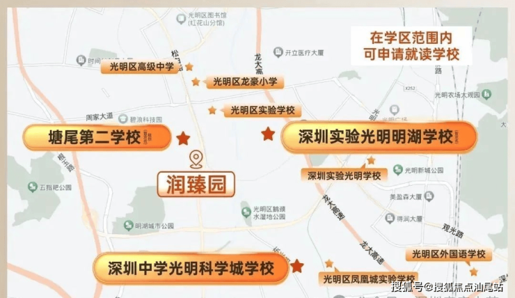 大城规划3所九年一贯制学校、其中一期学校深圳实验光明明湖学校(暂定名)建设中,项目3公里范围内涵盖深圳中学光明科学城学校、深圳市光明实验学校等。