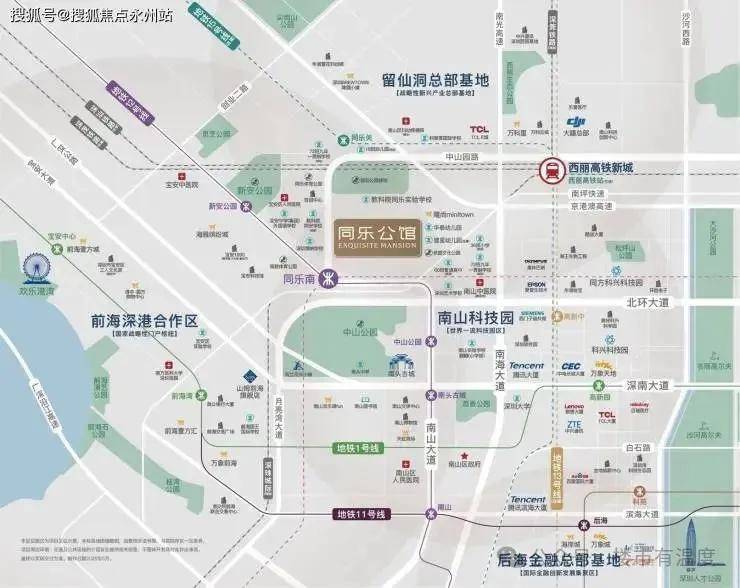 项目位于南山区与宝安区交界处,直线3公里覆盖科技园、前海自贸区、留仙洞总部基地三大产业核芯。科技园聚集腾讯、大疆等3000+科技企业,留仙洞总部基地已吸引优必选、深信服、大疆等企业入驻,规划高端就业人口约60万,形成超3000亿元产业集群。同乐片区作为产业外溢的直接承接点,将优先享受“职住平衡”红利,成为科技园、前海等高薪人群的居住优选