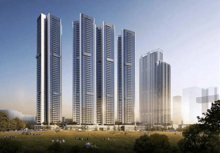 01-02地块占地约1.23万平方米,总建筑面积约15.08万平方米,计容建筑面积约10.85万平方米,容积率为8.31,绿化率为40.01%。该地块包含2栋住宅楼,分别为41层和59层,以及1栋30层的办公楼和1所9班制幼儿园。总规划1194户,住宅楼采用3梯4户设计,其中包括972套保障房。