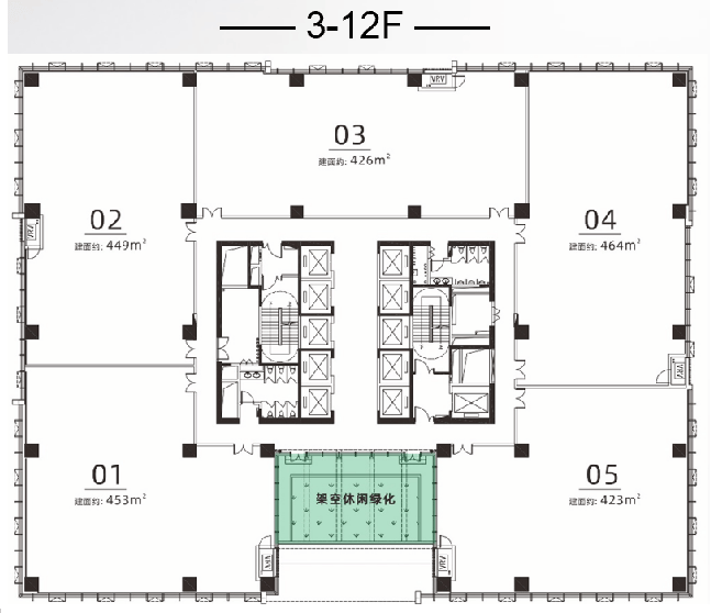 面积段:约421-476㎡-2200㎡(整层)