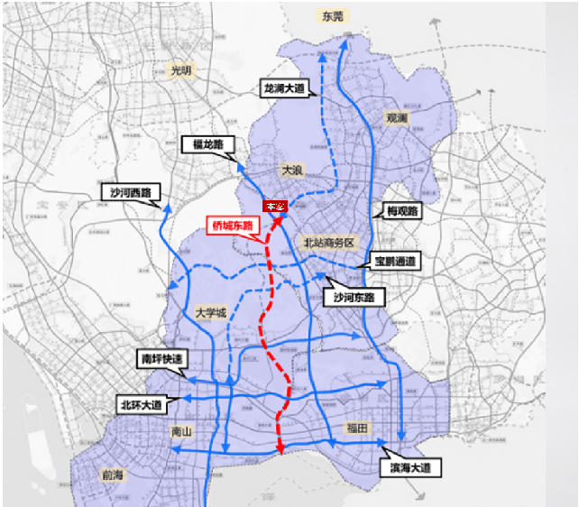 一纵:龙大高速直达光明中心区及东莞松山湖